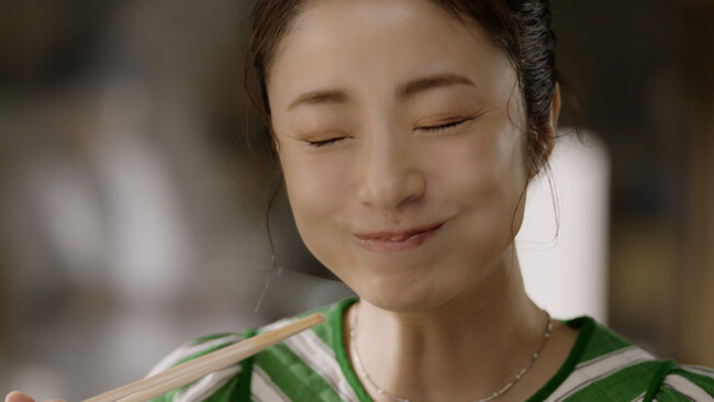 今回のTVCM、丸亀製麺「麺そのもののおいしさ!ひと口醤油うどん」篇は、丸亀製麺の原風景である讃岐の製麺所をイメージしたセット内で、麺職人が粉から打つ「打ち立て・生」のうどんを大きな釜の中で茹でるシーンからスタート。茹で釜から打ち立て、茹でたての麺を引き上げて、器に丁寧に盛り付けます。仕上げにだし醤油が回しかけられた「ひと口醤油うどん」をすすり、上戸さんは小麦の風味や茹でたてあつあつでふわふわ、もちもちの食感を味わいます。よりおいしさに磨きがかかった麺そのものを実感し、おいしさを?みしめている上戸さんで本TVCMを締めくくります。