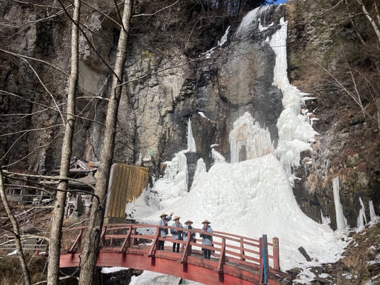 絶景の凍る滝