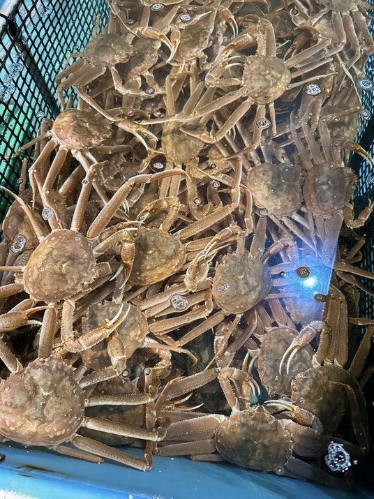 現在、北海道の噴火湾ではオオズワイガニが豊漁です。イカの不漁のなか、新たな水産の名産品として地域に期待されている一方、オオズワイガニは、カレイなどのほかの水産物の漁網を食い破るなど厄介者扱いされている面もあります。