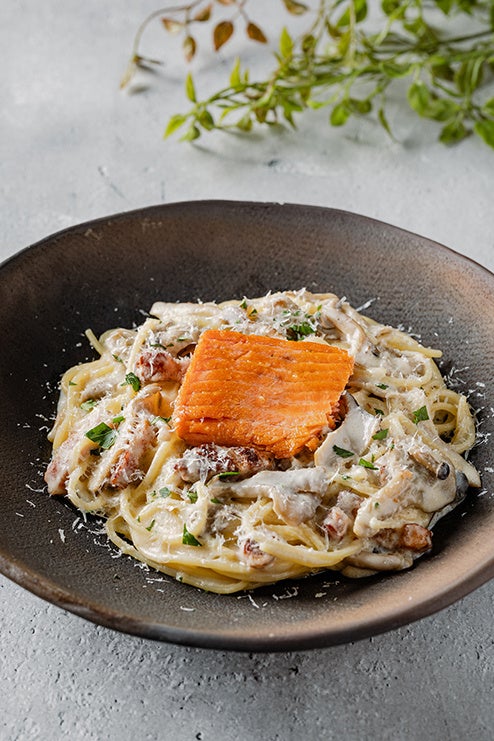 サーモンときのこのレモン香るクリームソース フェットチーネ