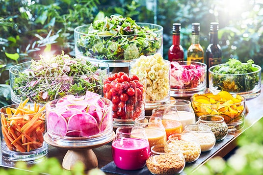 ランチタイムには新鮮な野菜、ハーブ、フルーツを使ったサラダバー