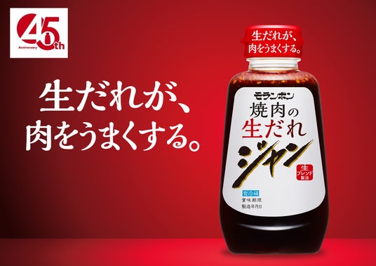 モランボン株式会社(本社:東京都府中市 代表取締役社長:全 峰 碩)は、「ジャン 焼肉の生だれ」発売45周年を記念して、「おうち焼肉の満足度アップ・食体験」をテーマに様々なコミュニケーション施策を実施します。 節目を迎える年にあたり、皆さまへの感謝の気持ちをお伝えするとともに、より多くの方に「ジャン 焼肉の生だれ」を知ってもらい、美味しさを体験していただきたいと考えています。