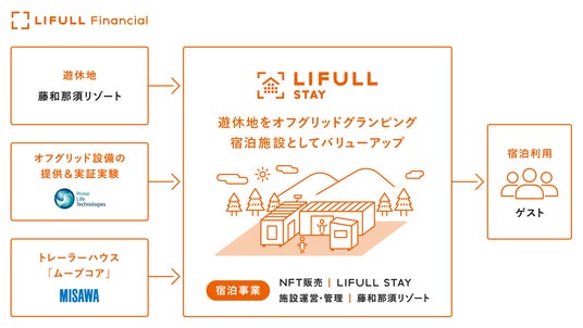 当施設の宿泊事業の運営はLIFULL Financialと藤和那須リゾートとが共同で行います。宿泊施設運営を別荘地「那須ハイランド」の販売・管理実績を有する藤和那須リゾートが担い、施設を優先的に利用できる会員権・宿泊権の発行などの販売促進をLIFULL Financialが担います。施設に用いられているオフグリッド設備においては、自然発電するための薄型軽量の太陽光発電システムや発電した電気を有効活用する蓄電池、電気自動車から電気の供給を受けるV2Hスタンドといった設備をプライム ライフ テクノロジーズが提供しています。
