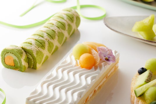 5月7日(火)より開催する『初夏のプリフィックスランチ』では、旬のメロンをたっぷり使った「メロンデザートブッフェ」が登場します。シェフサービスの「メロンアラモードモンブラン」は、メロンのエキスとマスカルポーネ、練乳を使用したクリームをプリンと合わせました。濃厚かつ爽やかな新感覚のモンブランをお楽しみください。さらに4銘柄のフレッシュなメロンもご用意し、銘柄ごとに異なる味わいを食べ比べていただけます。その他、みずみずしいメロンをふんだんに使用した「メロンショートケーキ」や「メロンロールケーキ」、「メロンタルト」など、初夏らしい見た目と味わいのメロンスイーツを豊富に取り揃えています。