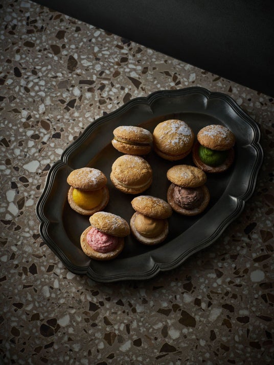 ブラッドオレンジ(愛媛県産)とピスタチオ(シチリア島ブロンテ産)/あまおういちご(福岡県産)とバニラ(マダガスカル産)/王林りんご(青森県産)とアールグレイ/不知火みかん(熊本県産)とプラリネ/安納芋(鹿児島県産)とカルバドス/紫いも(鹿児島県産)とカシス