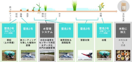 *3)2023年5月16日 米粉用稲作開始(「雷鳥1号」、ドローンによる直播など)https://www.tmsuk.co.jp/topics/4107/
