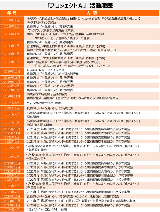 これまでも、プロジェクトAでは「食物アレルギーへの理解を社会に広める」ことを目的のひとつとし、講演会開催等による情報発信や、各社が持つ食物アレルギー配慮商品を活かしたレシピ開発による『調理メニューのバリエーション』と『加工食品を使用することによる調理の利便性』をご提供してまいりました。今後ドレッシングなどを取り扱うエスエスケイフーズが参画することにより、これまで以上にお客様に喜んでいただけるメニュー提案等、活動の幅をさらに広げることができると考えております。