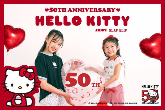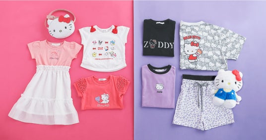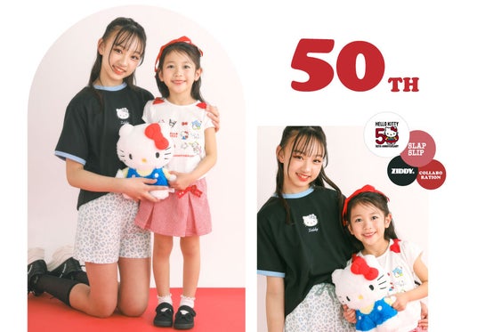 神戸発、子供アパレルの株式会社べべ(本社:兵庫県神戸市、代表取締役社長:卜部 正寿)が展開する「SLAP SLIP(スラップスリップ)」「ZIDDY(ジディー)」は、株式会社サンリオのキャラクターで今年50周年を迎えた「ハローキティ」とコラボレーション。4月上旬頃よりSLAP SLIP(スラップスリップ)全国57店舗、ZIDDY(ジディー)全国38店舗、BEBE公式オンラインストア(BEBE MALL)にて同時発売。