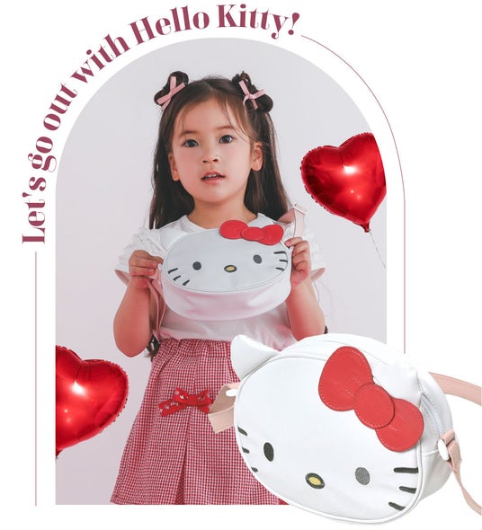 ハローキティのお顔モチーフがキュートなポシェット。お耳やリボンが立体的なのがポイント◎ファスナー付きなので中身が落ちにくいのもうれしいアイテム!肩紐をお子様に合わせて調節できるので、長く愛用できます♪斜めがけできるので、両手が自由に使えてお出かけが楽しくなるおしゃれなポシェットです。
