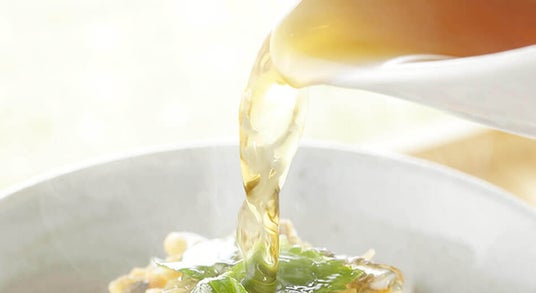 ふっくらしっとり、本来の食感と風味を活かして丁寧に仕上げた具材と、こだわり無添加の特製だしつゆで本格的な料亭の味が楽しめます。試行錯誤を加え新しくなった黄金色のだしつゆは、2種類の本醸造醤油をベースに厳選した宗田鰹節から抽出した天然のダシを使用してます。化学調味料は一切使用せず、鰹が持つ本来の旨味によって素材の味を引き立たせます。