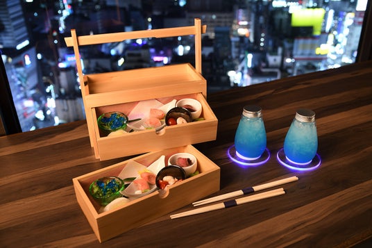 ◆夏祭りフード&ドリンクホテルスタッフがお部屋まで、岡持ちに入った“NEO夏おつまみ”と“夏カクテル”をデリバリー。