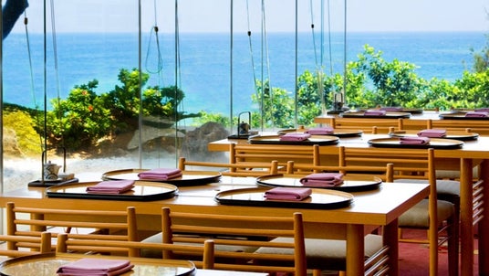 海風を感じるブッフェレストラン。店内で焼き上げるパンやオムレツなどの玉子料理、フルーツを絞ってつくるフレッシュジュースなどでリゾートの朝を満喫。