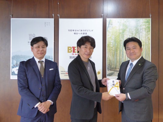 地域活性化ホテル「アマネク別府ゆらり」「アマネクイン別府」(以下:アマネク別府)を運営する株式会社アマネク(東京都千代田区、代表取締役:安達禎文)は、日本を代表する温泉地「別府」のさらなる発展に向けた思いから、企業版ふるさと納税を活用して大分県別府市へ3000万円の寄付を行いました。それに伴い、4月5日(金)に別府市役所にて贈呈式が開催されました。