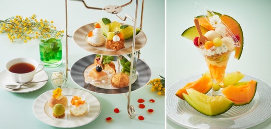 左:「メロンのアフタヌーンティーセット」、右:「メロンパフェ」 イメージ