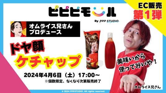 PPP MALLは、PPP STUDIOに所属もしくは提携のあるクリエイターとそのファンの皆様に向けたサービスで、オリジナルグッズの販売をメインに展開いたします。第1弾のオリジナルグッズとして、オムライス系クリエイター「オムライス兄さん」がプロデュースするトマトケチャップ「ドヤ顔ケチャップ」をPPP MALLオープンと同日より販売開始いたしました。オムライス兄さんのオリジナルグッズは”ドヤ顔シリーズ”として今後も様々な商品を展開していく予定です。ぜひご期待ください。