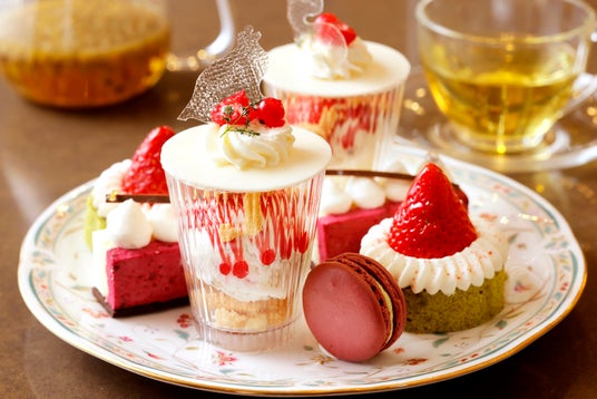上段は、見た目も華やかなグラス盛りのデザートや、大粒の苺がのった抹茶ロールなどのスイーツを、中段・下段は、季節の食材を使ったキッシュやマリネなどのセイボリーを盛りつけ、遅めのランチとしてもご利用いただけます。またスコーン、黒豆バゲットとクロワッサンは、より温かな状態で味わっていただきたいとの思いから、バスケットに盛りつけてお客様のテーブルにお届けいたします。ドリンクは、ドイツの最高品質紅茶ブランド「ロンネフェルト」はじめ、コーヒー各種、季節のノンアルコールカクテルを含む17種類の豊富なラインアップです。
