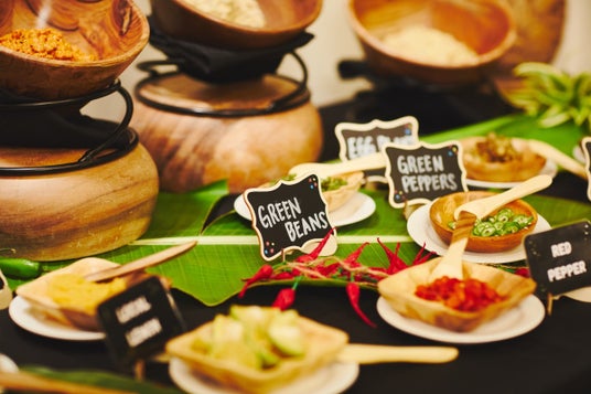 南国の色とりどりの食材やチリペッパーをパレットの上で混ぜ合わせ、自分色のカラーパレットを作ることができます。辛いのが苦手な方やお子様にはマンゴーやココナッツと合わせてマイルドな味わいにしたり、辛さをとことん追求したい方には、「ブーニー」と呼ばれるローカルのチリペッパー、ハラペーニョ、ハバネロに、玉ねぎやガーリックを合わせたりするのがお薦めです。