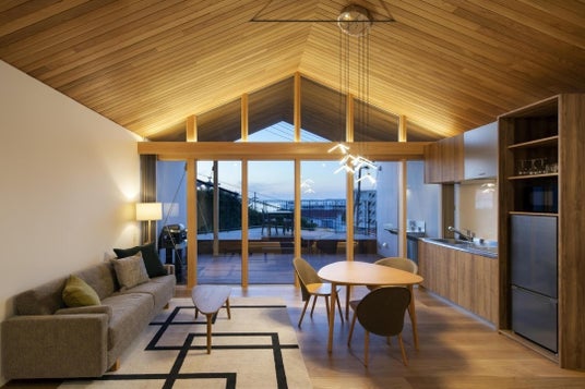 2階「穏」の広々としたリビング(最大7名宿泊可能)