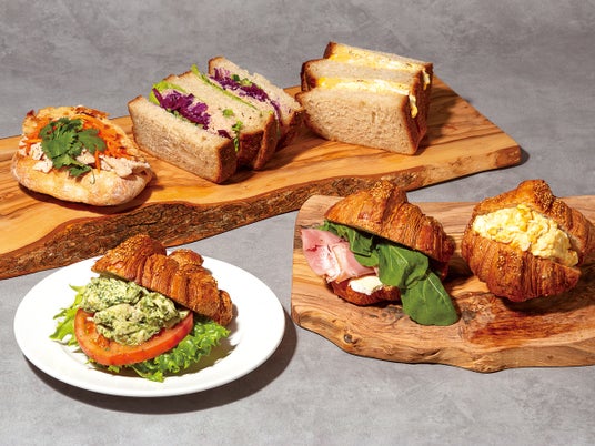 「THE CITY BAKERY 中之島フェスティバルプラザ」では、「プレッツェルクロワッサン」にバジルソースを和えた蒸し鶏を挟み込んだ「クロワッサンサンド バジルチキン」、優しいたまごの風味とケーパーの酸味が効いた「たまごサンド」など、味わいも見た目も楽しいユニークなサンドイッチが並びます。