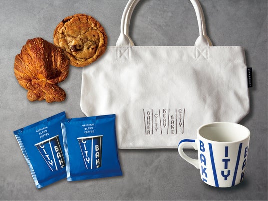 今春発売予定の新色「THE CITY BAKERYロゴデザインマグカップ」が入った「オープン記念セット」。普段使いも便利な人気のトートバッグに「プレッツェルクロワッサン」やクッキーなどTHE CITY BAKERYの魅力をお楽しみいただける商品が詰まったお得なセットが、オープンより2日間、各日数量限定で販売を行います。