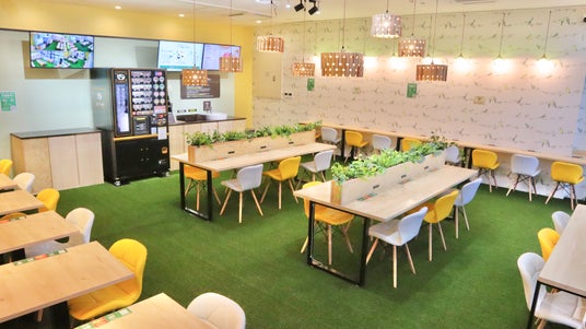店内は全席で42席と多く席数を配置しており、教科書・パソコンも広げて作業できるゆったり空間となっており、リモートワークの方だけではなく、会社勤め方の仕事終わりに今日の業務の整理やまとめ、社会人のリスキリングや試験勉強など集中しやすい環境を整えております。