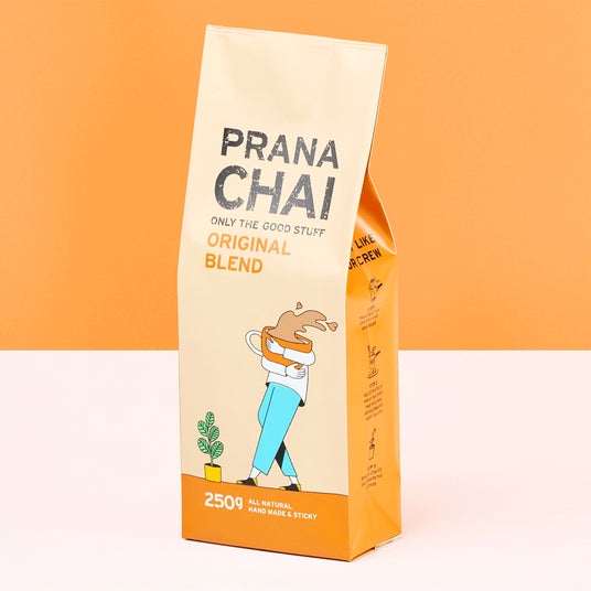 パッケージを開けると、中には茶葉とスパイスにハチミツを絡めた「PRANA CHAI」が。原材料はすべて自然素材。砂糖は一切使っておらず、オーストラリア産ハチミツがチャイの自然な甘さを引き出しています。