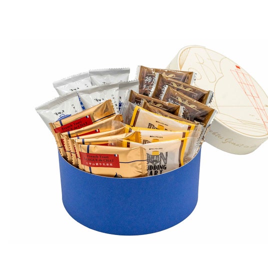 神戸のモチーフをデザインした丸い箱にお入れしています。ギフトにぴったりな可愛いデザインとバラエティ豊富な4種類の味が楽しめます。手土産におすすめな商品です。