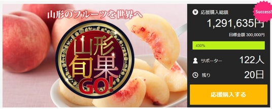全国各地100名を超えるサポーターの皆様のおかげで、本プロジェクトの目標を大幅に達成することができました。心より感謝申し上げます。皆様に喜んでいただきたく沢山のリターン品をご用意させていただいたため、弊社自慢の「山形旬果」はまだ余裕がございます。引き続き4月29日までプロジェクト応援購入を募集いたします。