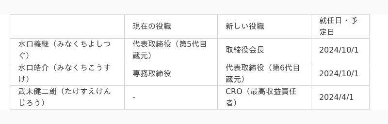 1895年創業の松山・道後地区唯一の造り酒屋・水口酒造(愛媛県松山市道後喜多町3-23)は、代表取締役兼第6代目蔵元に水口皓介が就任内定したことをお知らせします。合わせて、CRO(最高収益責任者)に元メルカリの武末健二朗が就任し経営体制を強化します。
