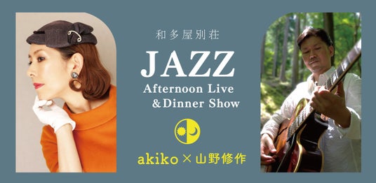 名門ジャズレーベル「ヴァーヴ」初の日本人女性シンガーとしてユニバーサルミュージックよりデビュー、日本を代表するジャズシンガー「akiko」と、ジャズギター専門誌で日本のジャズギタリスト100人に選ばれるなど、世界で高く評価される山野修作。おふたりが嬉野温泉の美しい景色をバックに心温まるジャズの調べを奏でます。心躍るライブの前にスイーツや軽食をご用意。訪れる皆様に贅沢なひとときをお約束します。●昼の部「Afternoon Live」