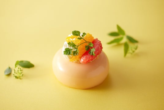 酸味の効いたオレンジムースの中に、爽やかなグレープフルーツのジュレとオレンジ風味の生地を合わせた、初夏らしい爽やかな一品です。オレンジのグラッサージュで仕上げ、トップにはフレッシュなオレンジとグレープフルーツを飾りました。