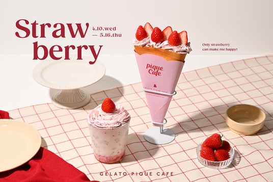 株式会社マッシュライフラボ(代表取締役社長:満塩雅一、本社:東京都千代田区)が運営するgelato pique cafe(ジェラート ピケ カフェ、以下ピケカフェ)は、昨年好評をいただいた「ストロベリーミルフィーユクレープ」をリニューアル、ジューシーで甘酸っぱい、いちごの季節を満喫できる季節限定クレープを4月10 日(水)から販売いたします。新登場のミルキーなドリンク「ストロベリーミルク」とともにお楽しみください。