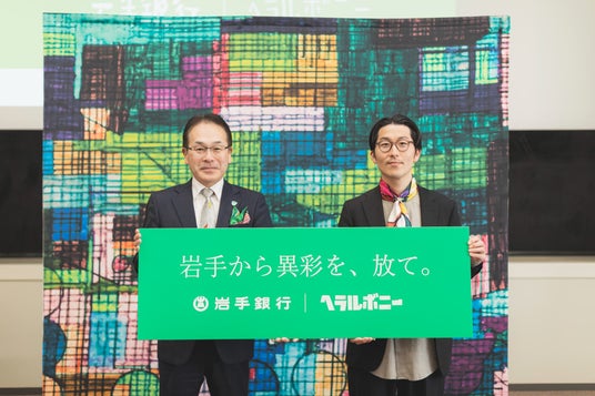 「異彩を、放て。」をミッションに掲げる株式会社ヘラルボニー(本社:岩手県盛岡市/代表取締役Co-CEO:松田 崇弥、松田 文登/以下、ヘラルボニー)は、株式会社岩手銀行(本社:岩手県盛岡市/代表取締役頭取:岩山 徹)を「岩手異彩化プロジェクト」メインパートナー参画第1号に迎え、岩手から異彩を放つ事業の企画立案や推進をして参ります。