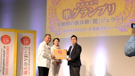 また、同大会でコラボ出場のドルチェかがみ合同会社様の出品された米発酵の新体験「麗」ジェラートは、「にっぽんの宝物グランプリJAPAN大会2023-2024・新領域部門」で準グランプリを受賞。米の発酵から生まれる乳化の力を活かした添加物不使用のヘルシーなジェラートにマイシュワグルトをご使用いただきました。