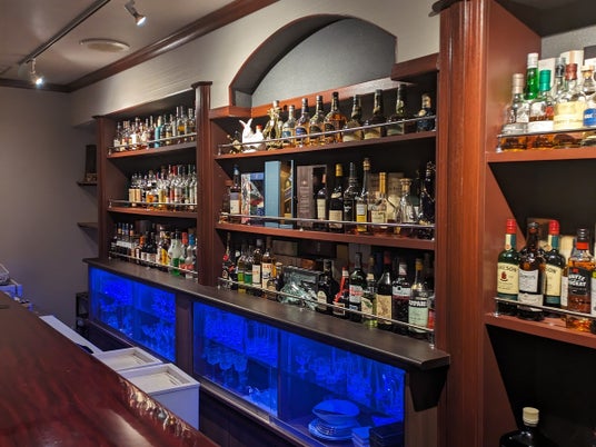 スコットランド帰りのバーテンダーが振る舞うウイスキーをどうぞ。一つ一つ手作りのこけし型の生チョコレートも人気。