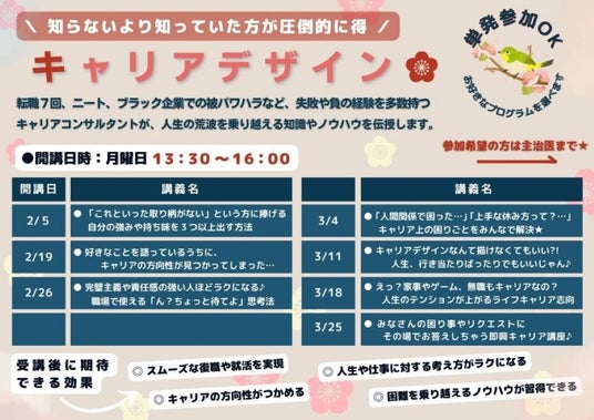 - 心療内科クリニックにおいて、精神疾患や発達課題のある患者を対象に、早期復職や就職を目指したキャリア関連のプログラムおよびキャリアカウンセリングを実施