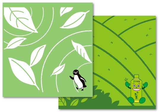 お茶の主成分カテキンを用いて染色したタオルです。お~いお茶くん、Suicaペンギンのデザインをミュージアム限定でご用意しました。