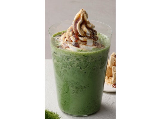 黒蜜ときな粉をトッピングし、濃厚な抹茶ともちもち食感のわらび餅をミックスした、和の新食感ドリンク。