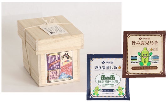 お茶を海外に輸出していた時代を思わせる蘭字のミニ茶箱に、鉄道とお~いお茶くんがコラボしたオリジナルデザインの緑茶ティーバッグを詰めたギフトボックスです。