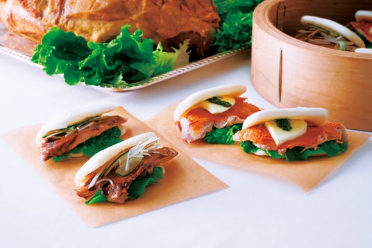 神奈川県銘柄豚やまゆりポークを挟んだ割包(クワパオ) チャイニーズスタイル または イタリアンスタイル
