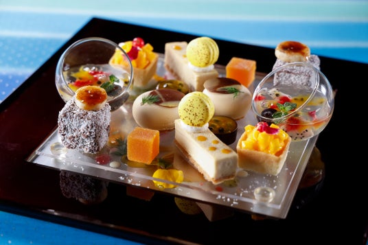 初夏の季節に旬を迎えるマンゴー、パイナップルやパッションフルーツなど南国のフルーツをたっぷりと使い鮮やかな色合いと、トロピカルな美味しさが詰まったアフタヌーンティーです。大開口の窓から望む地上約100mの景色と共にお楽しみいただけます。