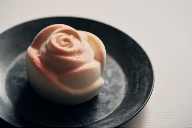 刻んだバラやフルーティな酸味のピンクペッパーを加えたジュレと優しいバニラのクリームを忍ばせて。