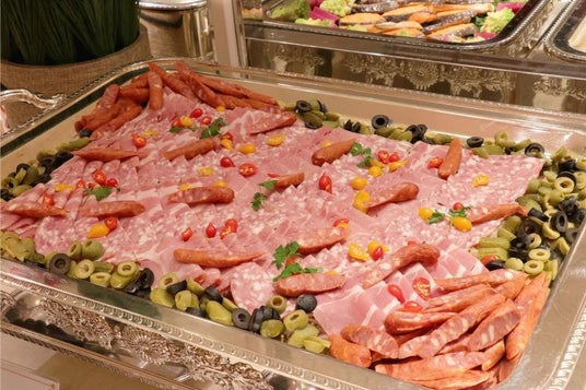 ■メニュー例:ホテル特製ローストビーフ(カッティングサービス)/えばらハーブ豚未来パヴェソテ/鮪のタルタールと野菜マリネ/スモークサーモン/香草パテとソーション/ローリエ特製こんにゃく入りビーフカレー/ミラノ風ラザドリア など約30種類※仕入れ状況によりメニューは変更となる場合がございます。