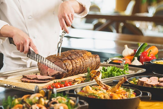 セイルフィッシュカフェでは、ライブキッチンでシェフが腕をふるうリゾートブッフェをお召し上がりいただけます。スペシャルメニューとして、肉料理のポルケッタとビーフステーキが登場。シェフが目の前で調理し、カットいたします。