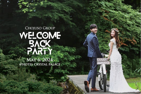 長寿荘グループでは結婚式を起点に一生涯のお付き合いをさせていただくべく、LTV(生涯顧客価値)を高めるイベントやプロモーションを展開しております。『Welcome Back Party ~感謝祭~』は元より3年に1度、挙式をされた方々を無料でご招待するイベントとして開催しておりましたが、コロナ禍において開催を順延しており、2024年5月6日(月祝)におよそ5年ぶりの開催が決定いたしました。