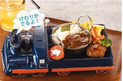 お子様カレーにミニハンバーグやゼリーなどを汽車のプレートに乗せてご提供します。