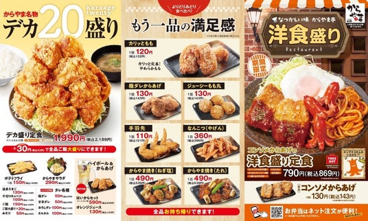 とんかつ専門店「かつや」などを展開するアークランドサービスホールディングス株式会社の子会社、エバーアクション株式会社(本社:東京都千代田区/代表:渡部 貴)は、2024年4月19日(金)より国内の「からやま」にて「コンソメからあげの洋食盛り定食」を期間限定で販売開始いたします。