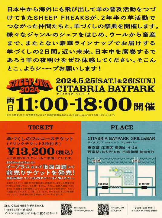 「SHEEP JAM 2024」は、食、ファッション、トークを通して、羊の魅力を余すことなく伝えるイベントです。