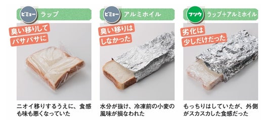 パンを美味しく保存するために開発された「パンおいしいまま」。家庭の冷凍庫内からのニオイ移りを防ぎ、焼き立てパンの香りを守ります。
