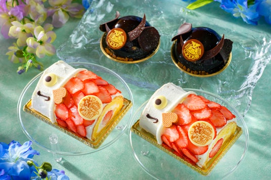 鱗に見立てたいちごを飾った鯉のぼりのロールケーキと、チョコレートムースで仕上げた兜の形をイメージしたケーキの2種類をご用意します。お子さまのすこやかな成長を願うお祝いのお集まりや手土産におすすめです。